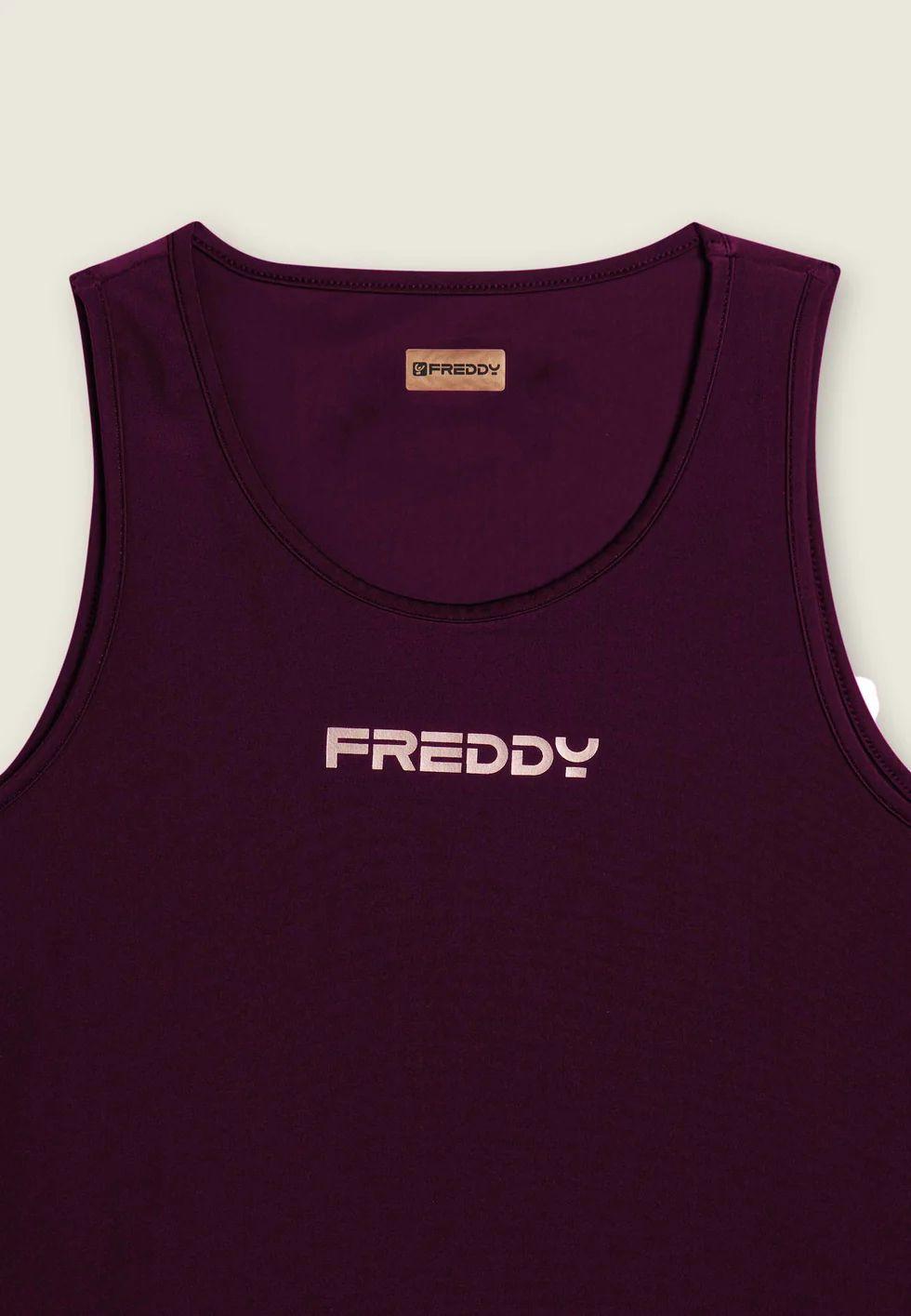 Canotta sportiva dal taglio regular, ideale per l’allenamento quotidiano. Il girospalla ampio assicura massima libertà nei movimenti, mentre le spalline regular garantiscono stabilità. Realizzata in jersey tecnico in nylon, è morbida, resistente e altamente traspirante. Completano il capo il logo FREDDY stampato sul fronte in contrasto.
