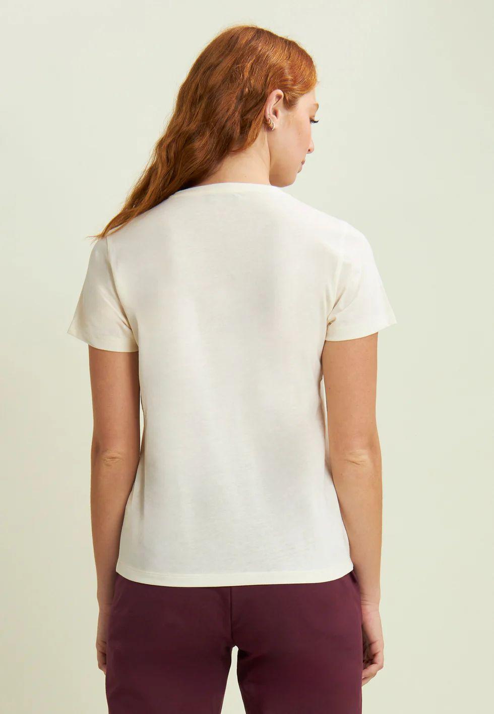 Modello da donna in jersey leggero con vestibilità comfort. Il fondo è dritto, lo scollo rotondo e le maniche corte. La stampa frontale presenta logo FREDDY e lo slogan “Time to Shine” in una grafica dorata discreta ma distintiva.