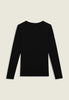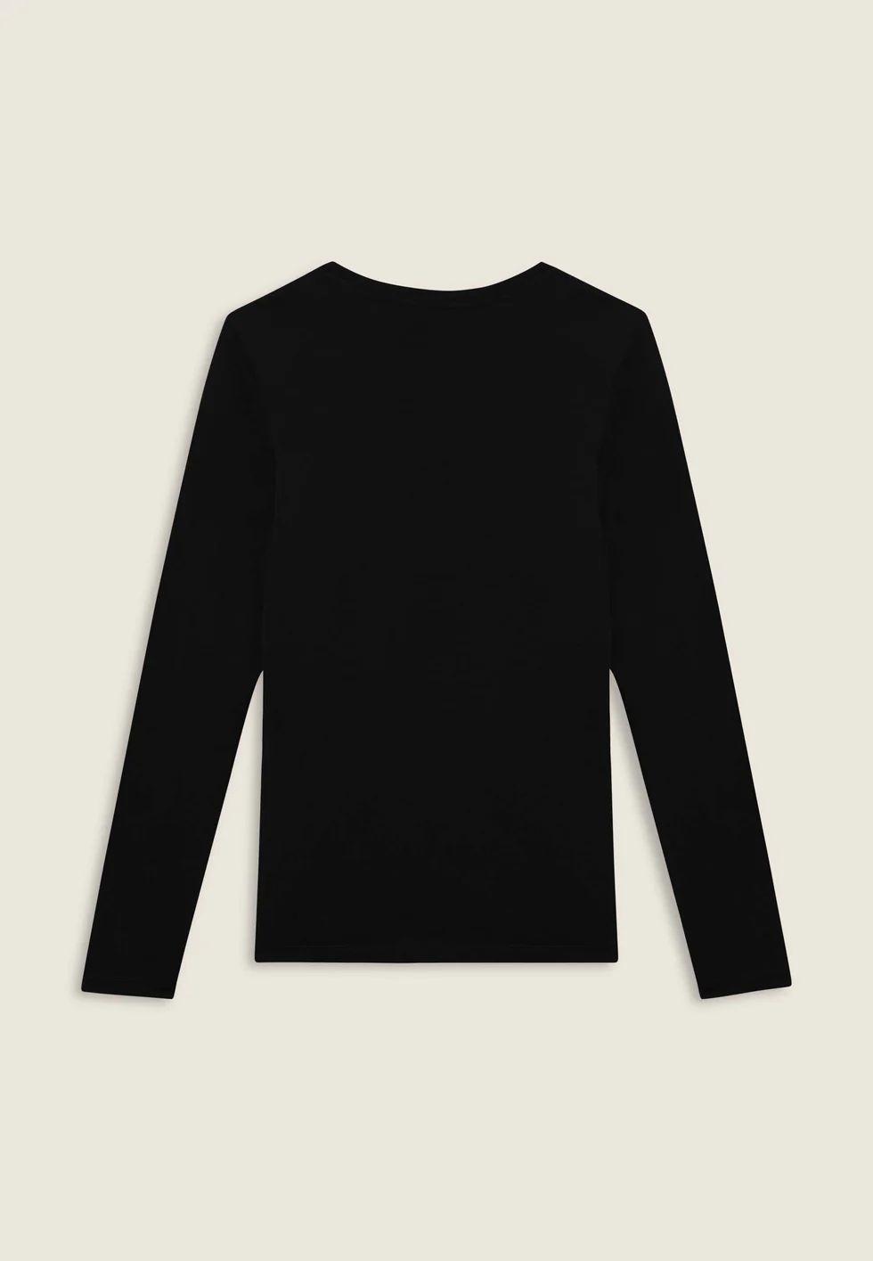 T-shirt donna in jersey Supima con vestibilità comfort e fondo leggermente stondato. Le maniche lunghe e lo scollo girocollo completano un look pulito. Il fronte è decorato da una grafica oro chiaro con logo FREDDY in strass, per uno stile sobrio ma brillante.