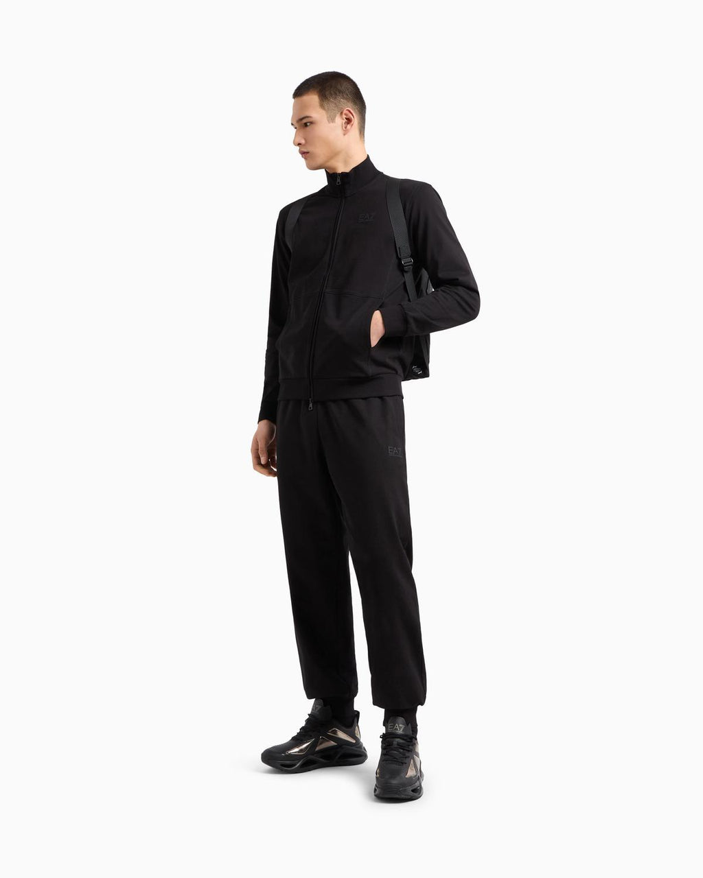 Personalizzazione con logo EA7 a contrasto su entrambi i capi.