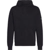 Felpa semplice in tinta unita con cappuccio, tasca marsupio sul davaneti e patch logo applicata sul braccio sinistro.